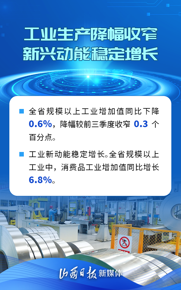 近日,山西省統(tǒng)計(jì)局公布1至10月份全省經(jīng)濟(jì)運(yùn)行情況:各項(xiàng)穩(wěn)增長政策舉措持續(xù)發(fā)力,政策效應(yīng)逐步顯現(xiàn),工業(yè)、投資、消費(fèi)等主要經(jīng)濟(jì)指標(biāo)增速均有回升,就業(yè)物價(jià)總體穩(wěn)定,積極因素累積增多,全省經(jīng)濟(jì)運(yùn)行回升向好。
