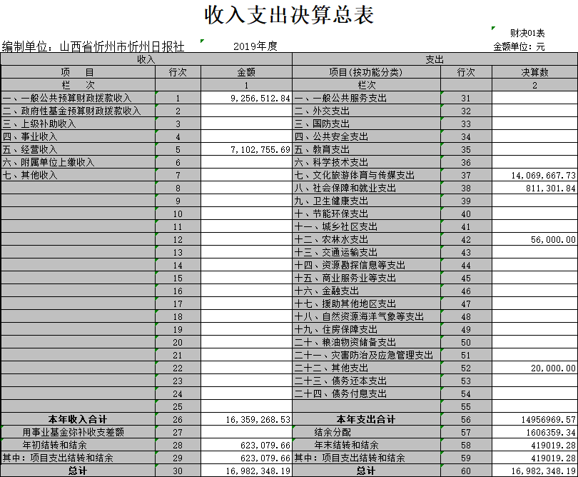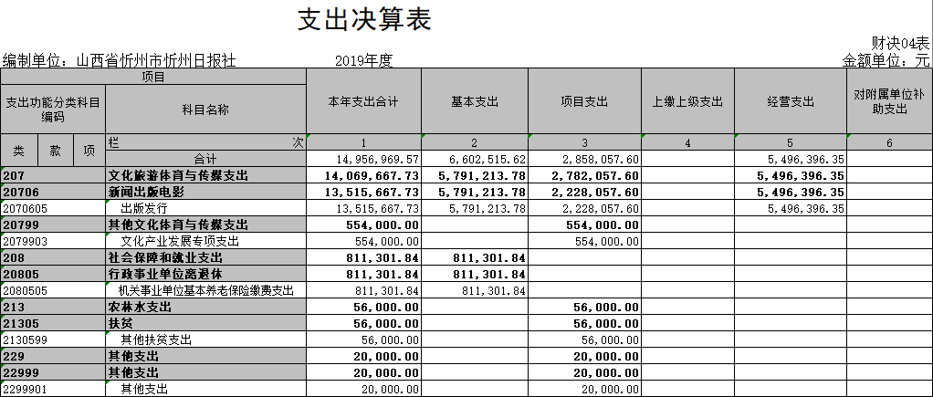 三、忻州日?qǐng)?bào)社2019年部門(mén)決算收支情況說(shuō)明