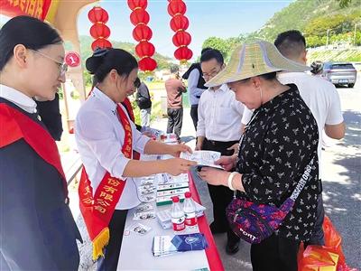 福建省福清市一家保險(xiǎn)機(jī)構(gòu)在石竹山景區(qū)向游客宣傳保險(xiǎn)知識(shí)。 盧燕 攝