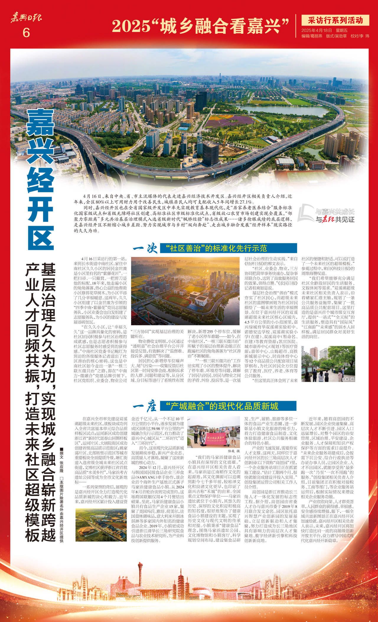同時,嘉興經(jīng)開區(qū)也在全省國家級開發(fā)區(qū)中率先實現(xiàn)教育基本現(xiàn)代化,是“居家養(yǎng)老醫(yī)養(yǎng)結(jié)合”服務(wù)標(biāo)準(zhǔn)化國家級試點和省級無障礙社區(qū)創(chuàng)建、高標(biāo)準(zhǔn)社區(qū)市級標(biāo)準(zhǔn)化試點,省級放心農(nóng)貿(mào)市場創(chuàng)建實現(xiàn)全覆蓋,“鄰聚力零距離”多元共治基層治理模式入選省級新時代“楓橋經(jīng)驗”標(biāo)志性成果……諸多搶眼成績的底層邏輯,是嘉興經(jīng)開區(qū)不斷縮小城鄉(xiāng)差距、努力實現(xiàn)城市與鄉(xiāng)村“雙向奔赴”、走出城鄉(xiāng)融合發(fā)展“經(jīng)開樣本”現(xiàn)實路徑的久久為功。
