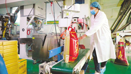 位于蔡家會鎮(zhèn)的興縣山花爛漫農(nóng)業(yè)綜合開發(fā)有限公司,日精加工50噸谷子成套設(shè)備生產(chǎn)流水線上,經(jīng)過初篩、精選、加工、包裝后的袋裝小米經(jīng)過傳輸帶被送往庫房,等待裝車發(fā)貨?!拔覀兊漠a(chǎn)品涵蓋有機(jī)小米、綠豆、莜面、豇豆面、亞麻籽油等,年加工雜糧、油料可達(dá)4萬多噸?!惫径麻L賀虎平介紹,自2005年“山花爛漫”商標(biāo)注冊以來,已與興縣50多個(gè)自然村,916戶農(nóng)戶,簽訂訂單農(nóng)業(yè)近3萬畝,其中脫貧戶430多戶,戶均收入達(dá)到1.5萬余元/年。