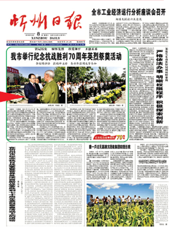 2015年9月7日上午,忻口戰(zhàn)役紀念墻廣場松柏青翠、莊嚴肅穆。忻州市紀念中國人民抗日戰(zhàn)爭暨世界反法西斯戰(zhàn)爭勝利70周年英烈祭奠活動在這里舉行。部分抗戰(zhàn)老戰(zhàn)士、老民兵、抗戰(zhàn)將領及其遺屬、子女代表和市直有關單位主要負責同志、各民主黨派代表,解放軍、武警、學生代表共300余人參加了活動。上午9時,英烈祭奠活動正式開始。全場肅立,向在忻口戰(zhàn)役中英勇犧牲的烈士默哀。市領導及老戰(zhàn)士代表共同敬獻了花籃。少先隊員在活動現(xiàn)場獻辭宣誓。市委書記李俊明代表市委、市人大、市政府、市政協(xié),以及全市干部群眾,向為國捐軀的抗日英烈和無辜死難的同胞表示深切的哀悼!向全市所有參加過抗戰(zhàn)的老戰(zhàn)士、老同志、抗日將領及其遺屬致以崇高的敬意!各位領導還與參加英烈祭奠活動的抗戰(zhàn)老戰(zhàn)士代表進行了親切交談,對他們?yōu)楸<倚l(wèi)國作出的貢獻表示敬意。市領導和各界代表還參觀了忻口戰(zhàn)役戰(zhàn)備窯洞遺址,觀看了忻口戰(zhàn)役圖片、影像展覽。