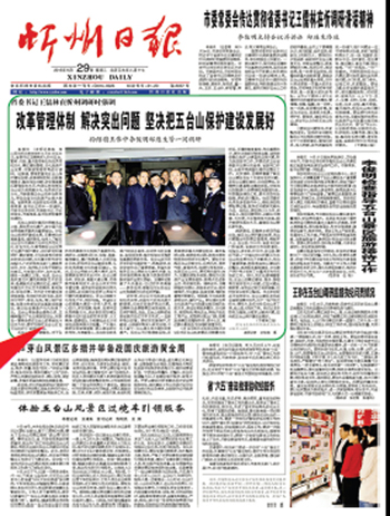 2015年4月2日,世界文化景觀五臺(tái)山作為5A景區(qū)被國(guó)家旅游局警告,9月14日又被央視“焦點(diǎn)訪談”曝光。9月21日至23日,省委書(shū)記王儒林深入五臺(tái)山就傳承弘揚(yáng)優(yōu)秀傳統(tǒng)文化、景區(qū)建設(shè)管理、文化旅游產(chǎn)業(yè)發(fā)展、宗教政策落實(shí)等進(jìn)行調(diào)研。他強(qiáng)調(diào),要高度重視五臺(tái)山保護(hù)建設(shè)發(fā)展,改革體制機(jī)制,創(chuàng)新管理理念,解決突出問(wèn)題,切實(shí)提高景區(qū)管理服務(wù)水平,傳承弘揚(yáng)發(fā)展五臺(tái)山悠久的佛教文化、優(yōu)秀的歷史文化,帶動(dòng)全省文化旅游產(chǎn)業(yè)做大做強(qiáng)。