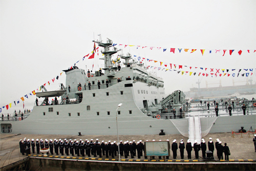 據(jù)悉,“五臺(tái)山艦”是我國(guó)自行研究設(shè)計(jì)的大型登陸艦,舷號(hào)為917,最大排水量5008噸,最大航速20節(jié)。該型登陸艦是我海軍近年來(lái)建造和裝備的新型登陸艦,性能設(shè)計(jì)更加貼近聯(lián)合登陸作戰(zhàn)的實(shí)戰(zhàn)需求。主要使命是登陸作戰(zhàn)及抗登陸作戰(zhàn)中實(shí)施輸送登陸兵渡海登陸和運(yùn)送物資裝備任務(wù)。平時(shí)可執(zhí)行運(yùn)輸補(bǔ)給、搶險(xiǎn)救災(zāi)、醫(yī)療救援等非戰(zhàn)爭(zhēng)軍事行動(dòng)。(李忻生 郝江男)