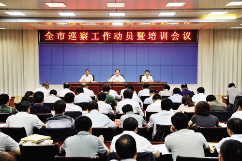 圖為全市巡察工作動(dòng)員暨培訓(xùn)會(huì)議會(huì)場。本報(bào)記者 劉紀(jì)森 攝