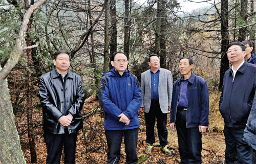 圖為市委書(shū)記李俊明在管涔山林區(qū)調(diào)研華北落葉松保護(hù)情況。(劉紀(jì)森 攝)