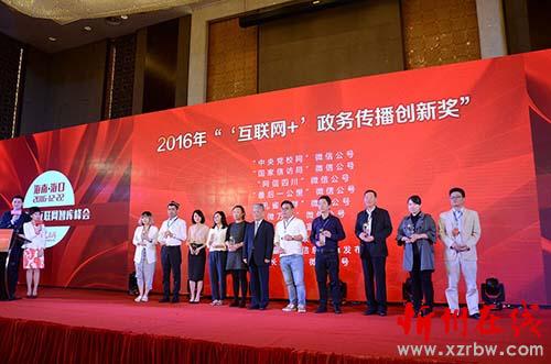 本報(bào)訊 12月22日,首屆全國(guó)互聯(lián)網(wǎng)智庫(kù)峰會(huì)暨第四屆網(wǎng)絡(luò)輿情論壇在海南省??谑新≈卣匍_(kāi)。中央及各?。ㄊ?、自治區(qū))宣傳和網(wǎng)信部門領(lǐng)導(dǎo)、國(guó)內(nèi)業(yè)界知名專家、學(xué)者、政務(wù)新媒體代表等200余人齊聚一堂,圍繞“‘十三五’供給側(cè)改革背景下輿論新格局”主題,深入探討互聯(lián)網(wǎng)內(nèi)容建設(shè)與供給、政務(wù)輿情回應(yīng)和引導(dǎo)的新理念、新思路、新格局。會(huì)議期間,舉行了2016年“互聯(lián)網(wǎng)+政務(wù)傳播創(chuàng)新獎(jiǎng)”、“政務(wù)輿情回應(yīng)優(yōu)秀獎(jiǎng)”、“城市新媒體傳播優(yōu)秀獎(jiǎng)”和“全國(guó)政法新媒體建設(shè)優(yōu)秀獎(jiǎng)”頒獎(jiǎng)儀式。忻州隨手拍榮獲2016年全國(guó)“互聯(lián)網(wǎng)+政務(wù)傳播創(chuàng)新獎(jiǎng)”,為十佳之一。