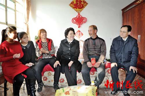 在東冶鎮(zhèn)永安村徐計(jì)文家,胡蘇平詳細(xì)了解家庭生產(chǎn)生活情況,詢問徐妻的病情,得知3個(gè)孩子都在上學(xué)、家中因病因?qū)W致貧后指出,扶貧必扶智,把孩子培養(yǎng)出來是根本的扶貧之策。她鼓勵(lì)徐計(jì)文夫婦樹立信心,咬緊牙關(guān),挺過暫時(shí)困難,用心把孩子們培養(yǎng)成人,并祝愿徐計(jì)文一家新的一年有大的轉(zhuǎn)變。村民徐喜堂在10多年前因事故腰椎受傷,不能從事重體力勞動(dòng),胡蘇平了解到他正在經(jīng)營(yíng)大棚,但設(shè)施落后、產(chǎn)出效益不好時(shí),隨即指示省人大駐村第一書記幫助設(shè)計(jì)改造大棚設(shè)施,適度擴(kuò)大種植規(guī)模,完善功能,增加種植品種,提高家庭收入,盡快脫貧致富。調(diào)研期間,胡蘇平囑咐貧困群眾,各級(jí)黨委和政府一定會(huì)按照中央和省委的部署,想方設(shè)法幫助他們解決具體困難,幫他們?cè)缛彰撠毐夹】?。同日,省人大常委?huì)13名專委主任分赴東治鎮(zhèn)和陽白鄉(xiāng)的8個(gè)包扶村貧困群眾家中進(jìn)行調(diào)研、慰問。