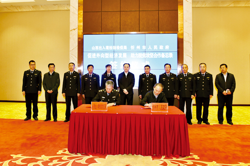 為進(jìn)一步貫徹落實(shí)省委省政府《關(guān)于全面擴(kuò)大開放的意見》,市政府和山西出入境檢驗(yàn)檢疫局本著“合作、服務(wù)、促進(jìn)、發(fā)展”的原則,經(jīng)認(rèn)真協(xié)商,就發(fā)揮各自職能優(yōu)勢,促進(jìn)農(nóng)產(chǎn)品擴(kuò)大出口、創(chuàng)建法蘭出口質(zhì)量安全示范區(qū)以及支持五臺山機(jī)場航空口岸臨時對外開放等方面達(dá)成共識,建立合作機(jī)制,促進(jìn)我市對外開放和外向型經(jīng)濟(jì)發(fā)展,助力脫貧攻堅(jiān)。具體合作事項(xiàng)包括:一、促進(jìn)農(nóng)產(chǎn)品擴(kuò)大出口。確定重點(diǎn)幫扶產(chǎn)業(yè),創(chuàng)建出口食品農(nóng)產(chǎn)品質(zhì)量安全示范區(qū),培育出口企業(yè),打造知名品牌,拓展國際市場。二、助推出口工業(yè)品質(zhì)量提升。推動質(zhì)量品牌提升,推進(jìn)工業(yè)產(chǎn)品“三同”工程,加強(qiáng)國外技術(shù)性貿(mào)易措施應(yīng)對,強(qiáng)化公共檢測技術(shù)服務(wù)。三、支持五臺山機(jī)場航空口岸臨時對外開放。全力支持五臺山機(jī)場對外開放口岸平臺建設(shè),科學(xué)規(guī)劃和建設(shè)五臺山機(jī)場口岸檢驗(yàn)檢疫技術(shù)查驗(yàn)設(shè)施,做好口岸核心能力建設(shè)和動植物檢疫規(guī)范化建設(shè)各項(xiàng)工作,防范國外人類傳染病和動植物疫情疫病傳入,保障國門生物安全。