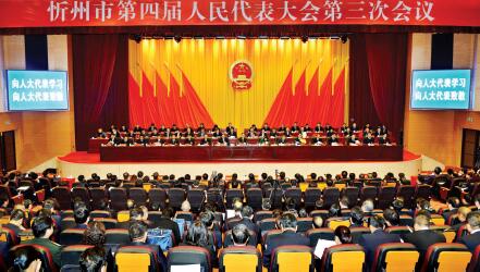 上午9時(shí)30分,賈雪峰宣布:忻州市第四屆人民代表大會第三次會議開幕。會場全體起立,奏國歌。