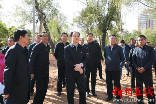 圖為省人大常委會(huì)副主任、市委書(shū)記李俊明就忻州城區(qū)建成區(qū)內(nèi)閑置地綠化和綠道建設(shè)進(jìn)行實(shí)地調(diào)研。本報(bào)記者 劉紀(jì)森 攝