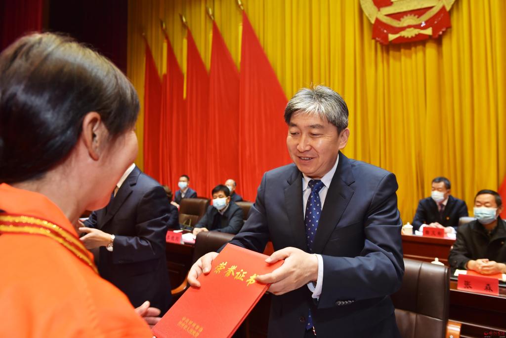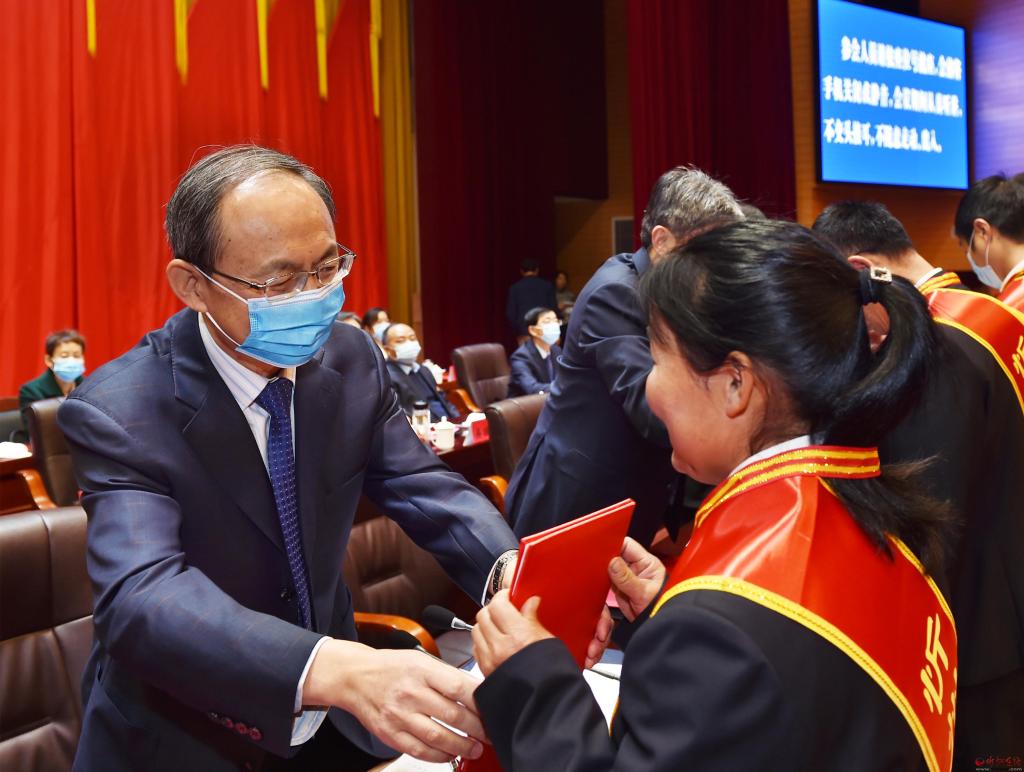 朱曉東為受表彰者頒發(fā)獎(jiǎng)牌和榮譽(yù)證書(shū)。馮曉磊 攝