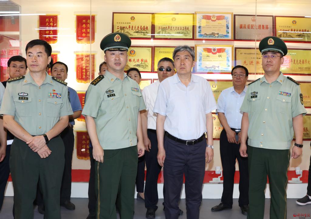 在武警忻州支隊(duì),朱曉東參觀支隊(duì)史展覽館,詳細(xì)了解支隊(duì)歷史沿革和發(fā)展情況。他指出,武警支隊(duì)是一支作風(fēng)優(yōu)良、能吃苦能戰(zhàn)斗能奉獻(xiàn)的隊(duì)伍,感謝大家在聚焦備戰(zhàn)打仗、深化拓展軍事斗爭(zhēng)準(zhǔn)備的同時(shí),積極參與和支持忻州經(jīng)濟(jì)社會(huì)發(fā)展,特別是在防火滅火、應(yīng)急救援、搶險(xiǎn)救災(zāi)中,官兵們第一時(shí)間響應(yīng),不畏艱險(xiǎn)、沖鋒在前,全力幫助處置險(xiǎn)情、整治環(huán)境,用實(shí)際行動(dòng)展現(xiàn)了人民子弟兵的本色擔(dān)當(dāng)。希望廣大官兵繼續(xù)加強(qiáng)訓(xùn)練,時(shí)刻準(zhǔn)備發(fā)揮職能,在保障全市安全穩(wěn)定方面作出更大貢獻(xiàn),在新時(shí)代新征程上再立新功。忻州將堅(jiān)持以習(xí)近平新時(shí)代中國(guó)特色社會(huì)主義思想為指導(dǎo),堅(jiān)定不移支持國(guó)防和軍隊(duì)現(xiàn)代化建設(shè),扎實(shí)推進(jìn)軍民融合發(fā)展,堅(jiān)定不移做好擁軍優(yōu)屬工作,不斷完善退役軍人服務(wù)保障體系,共同譜寫(xiě)軍政軍民團(tuán)結(jié)新篇章。