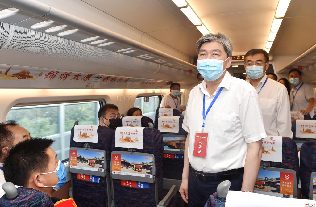 儀式結(jié)束后,朱曉東、李建國(guó)等一行共同乘坐以“錦繡太原·康養(yǎng)忻州”為主題包裝打造、冠名“太忻號(hào)”的D5306次動(dòng)車(chē)組列車(chē)返回忻州。