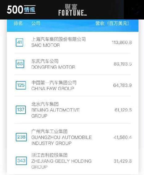 2017年7月20日,美國《財(cái)富》雜志正式公布“2017世界500強(qiáng)企業(yè)”排名。在今年的榜單中,中國上榜公司數(shù)量連續(xù)十四年增長,達(dá)到115家,僅次于美國,遠(yuǎn)遠(yuǎn)超越排在第三位的日本。而在這些大型企業(yè)佼佼者中,共有6家中國車企成功入選,分別是:上海汽車集團(tuán)股份有限公司,位列41名;東風(fēng)汽車公司,位列68名;中國第一汽車集團(tuán)公司,位列125名;北京汽車集團(tuán),位列137名;廣州汽車工業(yè)集團(tuán),位列238名;浙江吉利控股集團(tuán),位列343名。6家車企2016年?duì)I收總和達(dá)3989.59億美元,凸顯“中國制造”不俗實(shí)力。