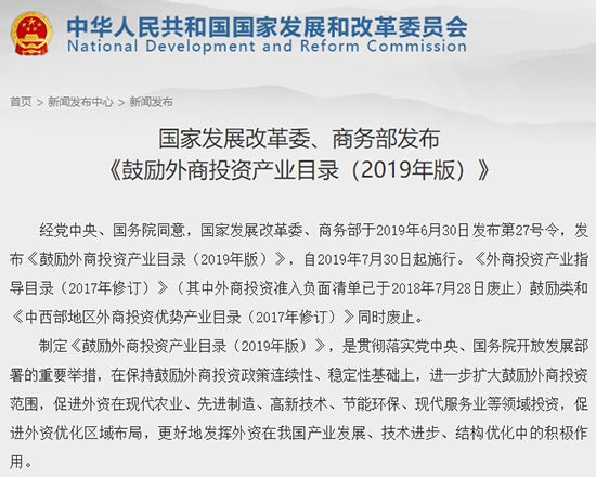 三文件均自2019年7月30日起施行,此前的《外商投資準(zhǔn)入特別管理措施(負(fù)面清單)(2018年版)》、《自由貿(mào)易試驗(yàn)區(qū)外商投資準(zhǔn)入特別管理措施(負(fù)面清單)(2018年版)》和《外商投資產(chǎn)業(yè)指導(dǎo)目錄(2017年修訂)》(其中外商投資準(zhǔn)入負(fù)面清單已于2018年7月28日廢止)鼓勵(lì)類(lèi)及《中西部地區(qū)外商投資優(yōu)勢(shì)產(chǎn)業(yè)目錄(2017年修訂)》同時(shí)廢止。