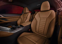 打開跑車專屬的無框式車門,迎賓光毯映入眼簾,彰顯匠心獨運的運動豪華氣息。全新BMW 4系雙門轎跑車的客艙設(shè)計現(xiàn)代而簡約,每一處細節(jié)都體現(xiàn)了BMW經(jīng)典的“以駕駛者為中心”的設(shè)計理念。Sensatec合成皮儀表板搭配智能感應(yīng)氛圍燈、高級三區(qū)自動空調(diào)與帶換擋撥片的M運動型多功能真皮方向盤,讓越級豪華的舒適感和動感十足的駕馭感撲面而來。同時,新開發(fā)的前排M運動型座椅采用人體工程學(xué)設(shè)計,擁有卓越的包裹和支撐效果。轎跑車專屬的安全帶推送功能讓車主于從容優(yōu)雅間,彰顯天性沖動的不羈個性。向駕駛員一側(cè)傾斜的中央控制臺,為前排座椅乘員營造出一種環(huán)繞式氛圍。配備一體式頭枕的獨立式后排座椅設(shè)計獨特,可輕松容納兩名乘員。降噪風(fēng)擋玻璃通過精心設(shè)計,有效地將風(fēng)噪轉(zhuǎn)移到車身周圍,為車內(nèi)營造出更加靜謐、舒適的駕乘體驗。