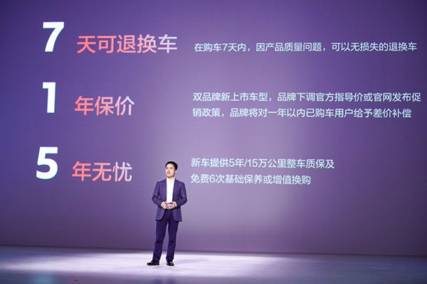 “買車放心”,開創(chuàng)性地推出“7·1·5”三項服務政策,即“7天可退換車”“新車承諾1年保價”“新車質保5年無憂”。消費者在購車7天內,因產(chǎn)品質量問題,可以無損失的退換車;雙品牌新上市車型,品牌下調官方指導價,或官網(wǎng)發(fā)布促銷政策,將對1年以內已購車用戶給予差價補償;新車至高享受5年/15萬公里整車質保+免費6次基礎保養(yǎng)(或可選擇增值換購禮),遠高于三包標準和行業(yè)水平。