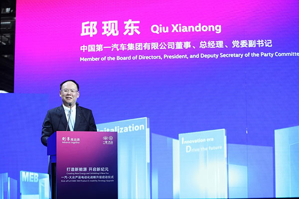 中國第一汽車集團有限公司董事、總經(jīng)理、黨委副書記邱現(xiàn)東在致辭時表示:“在新一輪科技革命推動下,汽車行業(yè)的發(fā)展格局、產(chǎn)業(yè)結(jié)構(gòu)、商業(yè)模式正在發(fā)生深刻的顛覆性變革,大力發(fā)展新能源汽車是汽車企業(yè)轉(zhuǎn)型升級的戰(zhàn)略方向。”