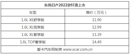 現(xiàn)款在售的軒逸為第14代車型,2022款軒逸延續(xù)了現(xiàn)款設(shè)計(jì)的同時(shí),針對(duì)配置進(jìn)行調(diào)整,頂配車型的售價(jià)也由14.3萬(wàn)元調(diào)整至14.49萬(wàn)元,價(jià)格上調(diào)了1900元。