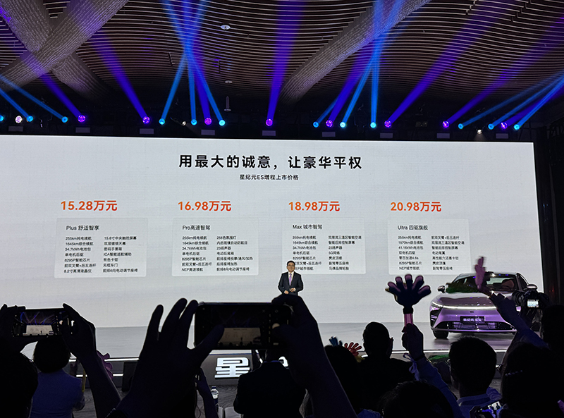 此次星紀元ES增程共推出四個版本,分別是Plus舒適智享15.28萬元、Pro高速智駕16.98萬元、Max城市智駕18.98萬元、Ultra四驅(qū)旗艦20.98萬元。上市期間下定并鎖單的用戶可享受七大權(quán)益,包含至高價值53000元的四大權(quán)益,分別為價值30000元NEP全場景智駕功能終身免費使用的智駕禮(限Max城市智駕和Ultra四驅(qū)旗艦)、價值10000元的3年0息金融方案的金融禮、價值10000元免費升級超享豪華包(限Pro高速智駕)的升級禮、價值3000元限時2000元升級價值5000元晨曦紅和極光紫個性外觀色的炫彩禮,還有質(zhì)保禮、流量禮、救援禮三大權(quán)益,將用戶權(quán)益最大化。