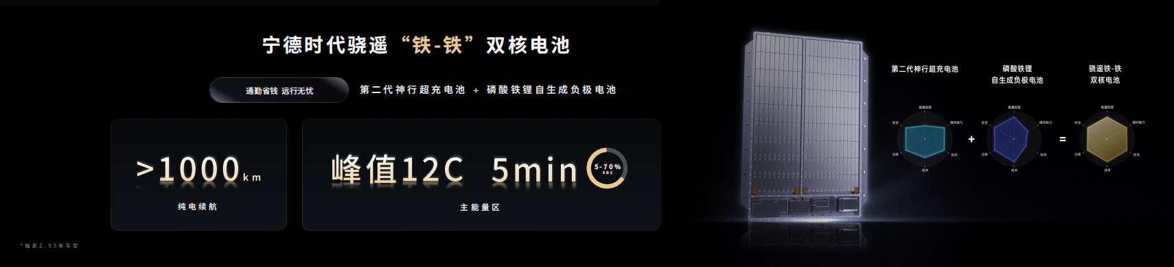 鐵-鐵雙核電池:第二代神行超充電池+磷酸鐵鋰自生成負極電池,在軸距接近3米的車型上可輕松實現(xiàn)千公里純電續(xù)航,同時讓每公里通勤成本低至1毛錢。