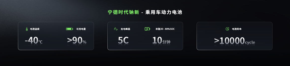 鈉新乘用車動力電池的能量密度達175Wh/kg,為當前全球鈉電最高,比肩磷酸鐵鋰電池;支持峰值5C的充電速率和500公里續(xù)航,實現(xiàn)超1萬個循環(huán)的壽命,同時大幅降低維護成本。在安全性上,鈉新電池從材料本征層面消除電池熱失控中的助燃因素,實現(xiàn)電池安全從"被動防御"到"本質安全"的跨越式突破。