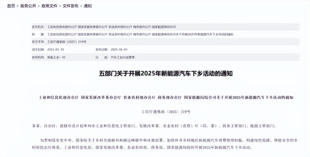 【環(huán)球網(wǎng)財經(jīng)綜合報道】6月3日,工業(yè)和信息化部等五部門聯(lián)合發(fā)布通知,開展2025年新能源汽車下鄉(xiāng)活動,以補齊鄉(xiāng)村新能源汽車消費短板,構(gòu)建綠色出行體系。