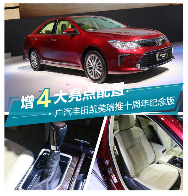 7月15日,為期10天的2016年長春國際汽車博覽會在吉林省長春市正式開幕。開幕式當(dāng)天,廣汽豐田正式發(fā)布凱美瑞十周年紀(jì)念版車型,共推出包括混動(dòng)版在內(nèi)的9款車型。新車在外觀和配置方面進(jìn)行了一些升級,將于今年8月到店上市。