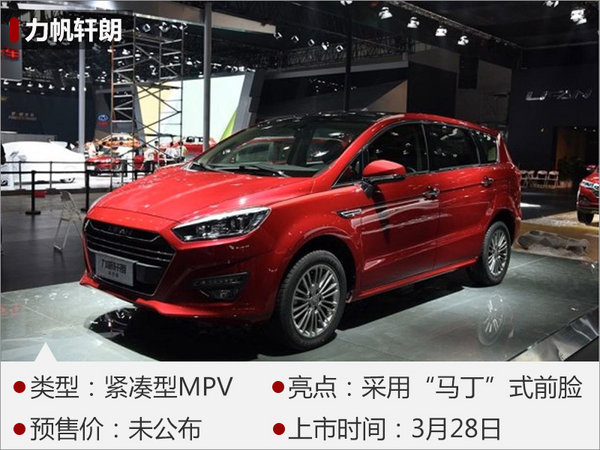 在2016年11月舉行的廣州國際車展上,力帆汽車對外發(fā)布了全新MPV—軒朗,其“馬丁”式前臉設計令人印象深刻,同時運動化輪圈與下沉式車頂?shù)拇钆湟彩窍嗟靡嬲谩?nèi)飾方面,力帆軒朗以黑色為主,中控臺下方按鍵布局較為簡潔,實用性較高。力帆軒朗搭載了1.5L渦輪增壓和2.0L自然吸氣兩款發(fā)動機,前者匹配的是8速自動變速箱或5速手動變速箱,后者則匹配的是5MT或CVT變速箱。新車將于3月28日正式上市。