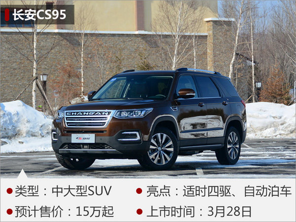 長安CS95是一款中大型SUV,于去年廣州車展正式發(fā)布,并將在今年3月28日上市。CS95的長寬高為4949*1930*1785mm,軸距2810mm。新車搭載全景天窗、車頂行李架以及LED大燈組等。在內(nèi)部配置方面,長安CS95配備了方向盤加熱、定速巡航等實用性配置。此外,新車還配備了ABS防抱死、車身穩(wěn)定控制系統(tǒng)等安全性配置。CS95搭載長安汽車自主研發(fā)的藍鯨2.0TGDI發(fā)動機,最大功率171kW,峰值扭矩360Nm。