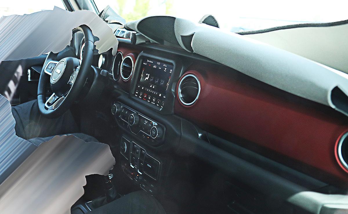 曝光的內(nèi)飾諜照是攝影師從車(chē)廂的右側(cè)拍攝的,因此不能清楚地看到該車(chē)的儀表盤(pán)。不過(guò),中控臺(tái)和車(chē)載信息娛樂(lè)系統(tǒng)卻清晰可見(jiàn)。據(jù)諜照顯示,該車(chē)的車(chē)窗控制鍵仍在中控臺(tái)的中間位置,這表明該車(chē)仍保留了車(chē)門(mén)可拆卸的設(shè)計(jì)。該車(chē)的儀表組新增7英寸(約18厘米)顯示屏。