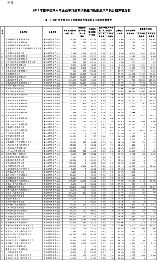附件:2017年度中國(guó)乘用車(chē)企業(yè)平均燃料消耗量與新能源汽車(chē)積分核算情況表.pdf