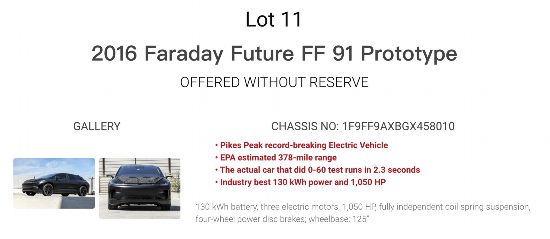 兩輛法拉第未來FF91原型車出現(xiàn)在拍賣網(wǎng)站上