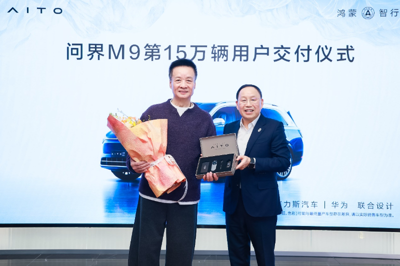 2025年1月8日,問(wèn)界M9第15萬(wàn)輛用戶交付儀式在北京舉行。賽力斯集團(tuán)董事長(zhǎng)(創(chuàng)始人)張興海向著名男高音歌唱家、藝術(shù)家閻維文老師交付問(wèn)界M9第15萬(wàn)輛新車鑰匙,共同見(jiàn)證了“世界級(jí)好車”問(wèn)界M9開(kāi)啟嶄新篇章的歷史性時(shí)刻。