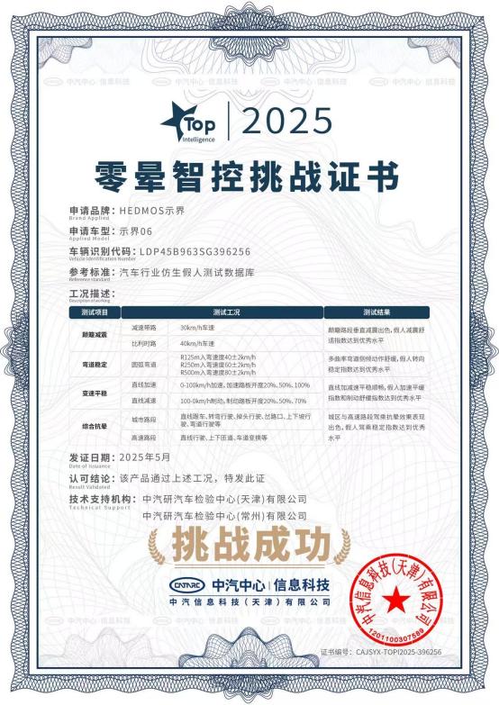 近期,在行業(yè)首次的暈動仿生假人零暈智控挑戰(zhàn)中,示界06展現(xiàn)了優(yōu)異的駕控表現(xiàn)。中國汽車研究中心有限公司高級工程師趙博文在發(fā)布會現(xiàn)場公布測試數(shù)據(jù)時指出:“通過精準的電機扭矩動態(tài)分配、法系底盤調(diào)?;?,以及搭載的‘零暈智控’技術(shù)體系,示界06在六維駕控測試中表現(xiàn)出行業(yè)優(yōu)秀水平?!睖y試結(jié)果顯示,示界06完美實現(xiàn)了“6不”卓越體驗:簸路不顛、彎道不飄、加速不竄、減速不抖、駕乘不暈、長途不累,為行業(yè)樹立了駕乘舒適新標桿。