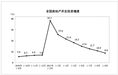 近日,國家統(tǒng)計(jì)局公布的最新全國房地產(chǎn)開發(fā)投資和銷售情況顯示,1月至9月,全國房地產(chǎn)開發(fā)投資112568億元,同比增長8.8%,比2019年1月至9月增長14.9%,兩年平均增長7.2%。其中,住宅投資84906億元,增長10.9%。