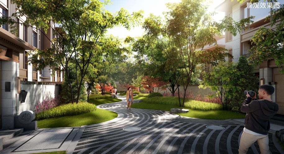 項(xiàng)目整體景觀設(shè)計(jì)以山林水源,禪意大宅為主線,將江南園林與皇家園林相結(jié)合,形成前府后院的園林形態(tài),景觀采用四級九景,四重栽植的造園手法,點(diǎn)綴了九個(gè)院落,四十個(gè)景點(diǎn)。園林鋪裝精致而具有設(shè)計(jì)感,在細(xì)節(jié)中加入特有的重視吉祥紋樣,更突出了新中式園林的設(shè)計(jì)風(fēng)格。