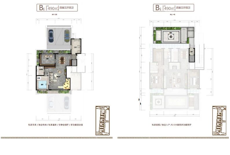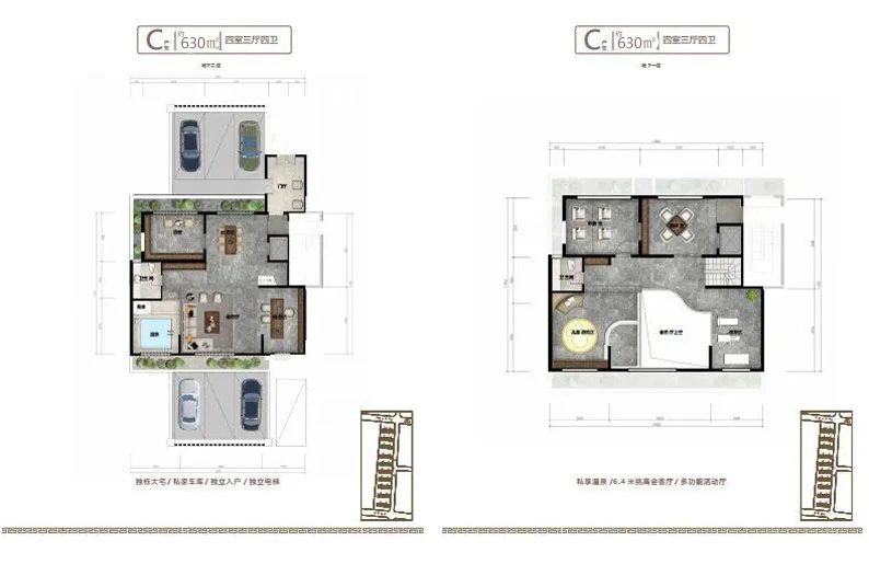 地下室設(shè)計(jì)不同于傳統(tǒng)地下室,只能為儲(chǔ)藏室使用,而小區(qū)地下室層高和地上建筑面積層高一致,達(dá)到了3.2米,沒有空間壓抑感,在南北庭院都設(shè)有1.2米的通風(fēng)采光井,室內(nèi)鋪設(shè)地暖及溫泉管道,上下水和衛(wèi)生間,私密性特強(qiáng),可以設(shè)計(jì)桑拿房,健身房,保姆間,洗衣房,酒窖及休閑娛樂等多功能區(qū)域,對于鄰居既不會(huì)產(chǎn)生噪音干擾,更不會(huì)打擾到家人的休息,在提高了生活品質(zhì)的同時(shí)也不會(huì)由空間局促感,地下室可以直通地下私家車庫,車庫層高4.2米,寬約7-10米,至少可以容納家用汽車三輛。