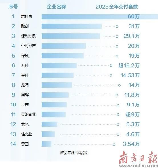 不過,盡管如此,記者從2023年交付排行榜中看到,龍頭企業(yè)仍為去年“保交樓”主力。據(jù)億翰智庫統(tǒng)計(jì),交付量排前五的碧桂園、萬科、融創(chuàng)、綠地等企業(yè),去年每家交付的套數(shù)均超過20萬套,五家房企的整體交付量占比接近四成;排名前十的房企交付套數(shù)甚至超過整體的一半。碧桂園、萬科、融創(chuàng)、龍湖等房企還在部分項(xiàng)目中積極推行“交房即交證”,有個別項(xiàng)目甚至實(shí)現(xiàn)了提前交付。