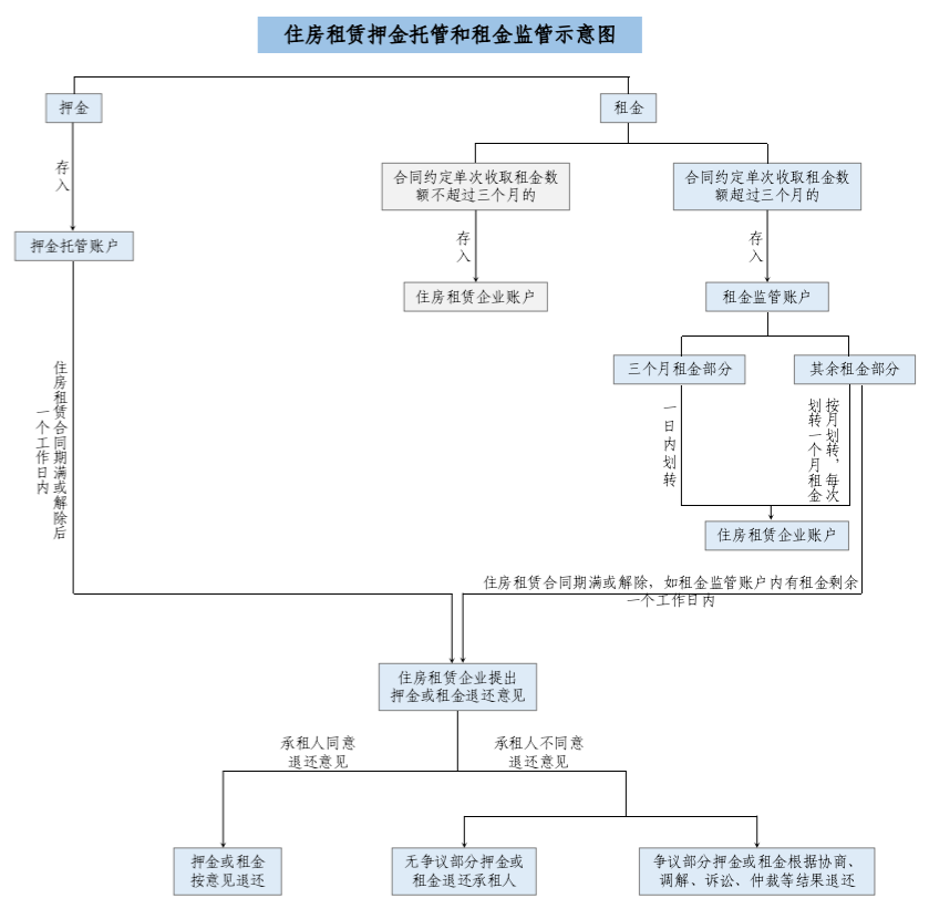 據(jù)了解,《北京市住房租賃條例》第三十六條規(guī)定,住房租賃企業(yè)向承租人收取的押金應通過第三方專用賬戶托管,單次收取租金的數(shù)額超過三個月租金的,超收的租金應當納入監(jiān)管,并且明確住房租賃企業(yè)收取的押金由第三方專用賬戶托管?!墩髑笠庖姼濉穱栏衤鋵崱侗本┦凶》孔赓U條例》規(guī)定,進一步制定相關實施細則,明確賬戶主體,規(guī)范押金托管、租金監(jiān)管業(yè)務流程。