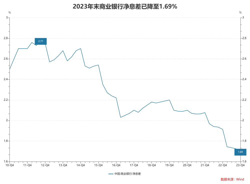 王青認為,2023年末商業(yè)銀行凈息差已降至1.69%,首次跌破1.7%關(guān)口,且突破了《合格審慎評估實施辦法(2023年修訂版)》中自律機制合意凈息差1.8%的臨界值。