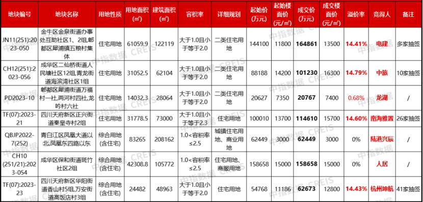 9月26日,成都推出新政,取消住宅清水限價(jià)、裝修限價(jià)及二手房指導(dǎo)價(jià)。本次土拍也是成都新政后的首次土拍,且是最后一次采用“限價(jià)競(jìng)買+抽簽競(jìng)得”的規(guī)則,未來將只保留“競(jìng)地價(jià)”的方式。即取消近三年的“限房?jī)r(jià)、限地價(jià)”的雙限政策和近七年的土拍熔斷機(jī)制,回歸到以“價(jià)高者得”的模式。
