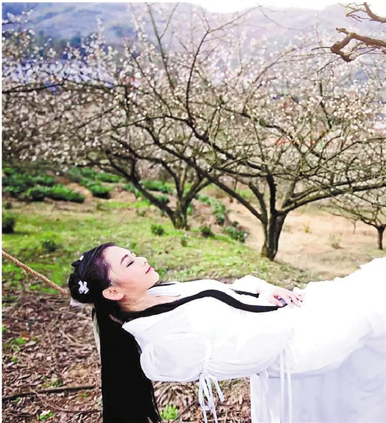 浙江在線03月22日訊(錢江晚報(bào)通訊員陳玉婷 記者苗麗娜)盛開的香雪梅海間,一個(gè)女孩白衣勝雪?;蛭鑴t灑不拘,行云流水;或輕曳秋千,靈動輕盈;或側(cè)顏微笑,嬌美動人。