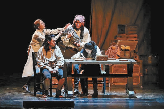 與16世紀(jì)“大航海”時(shí)代主題相扣,《威廉與我》的舞臺(tái)散發(fā)著復(fù)古氣息。巧妙多變的裝置設(shè)計(jì),融合了古典與當(dāng)代,既像一座微型劇場(chǎng),又像一艘航行大船,還像一頂恢宏皇冠,也像一處囚籠刑場(chǎng)。劇中四位優(yōu)秀演員,以幽默詼諧、靈氣詩(shī)意、舉重若輕、跳進(jìn)跳出的表演和身份轉(zhuǎn)換,分別扮演莎士比亞的童年、青年、中年、老年和其他30多個(gè)角色,在有限的時(shí)空中,用無(wú)限的想象力和表現(xiàn)力,將這位傳奇劇作家一生中的重要事件及作品創(chuàng)作情況串聯(lián)起來(lái),演繹出他所處時(shí)代的風(fēng)云變幻及其動(dòng)蕩漂泊的復(fù)雜一生。