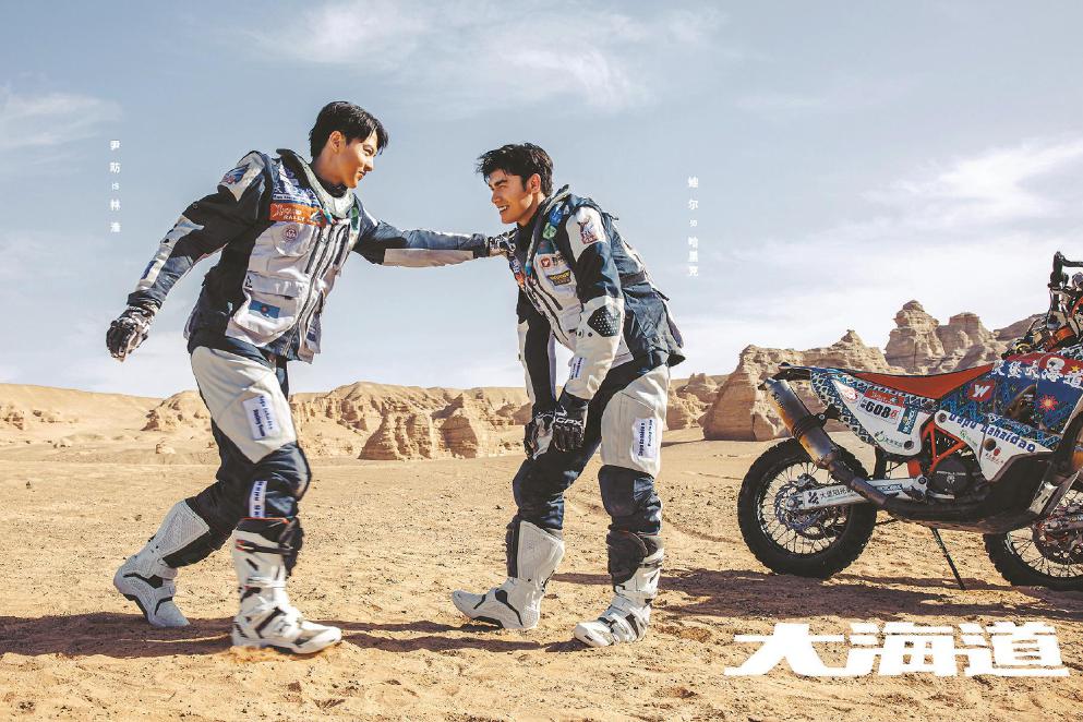 依據(jù)唐代典籍《西州圖經(jīng)》之記載:“大海道……常流沙,人行迷誤,有泉井,咸苦,無草”,古人在廣闊的大海道經(jīng)歷了艱難環(huán)境的試煉,憑借蓬勃的生命力量開辟中國陸上絲綢之路;劇中,哈里克、林浩駕駛摩托車馳騁于荒漠,進行極限體驗與挑戰(zhàn),延續(xù)了絲路上的生命力量,在兩千年后繼續(xù)書寫生命故事。