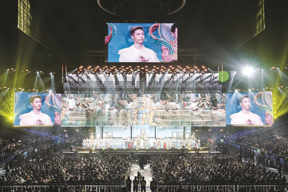 連續(xù)三晚,以數(shù)字多媒體營(yíng)造“敦煌空間”,用多元風(fēng)格的歌舞訴深情,這場(chǎng)百年追尋、千年回響將人們引入一個(gè)與我們所有人相關(guān)的敦煌。當(dāng)音樂(lè)話(huà)劇的形態(tài)與敦煌在數(shù)字時(shí)代的煥新達(dá)成內(nèi)在氣質(zhì)的高度契合,一次又一次,中華文脈在青春的律動(dòng)中擁抱觀眾。