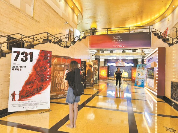 影迷在大光明電影院的電影海報前駐足 新民晚報記者 李永生 攝