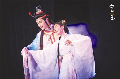 作為經(jīng)典IP改編的原創(chuàng)音樂劇,《寶玉》從創(chuàng)作過程到成型演出,持續(xù)引起外界廣泛關(guān)注和熱烈反響?!秾氂瘛氛缙涿?,以“寶玉”視角向眾人鋪開大觀園的離合悲歡。在有緣人對(duì)寶玉命運(yùn)的循循引領(lǐng)下,逐一展露寶玉的覺醒、黛玉的哀婉風(fēng)骨、寶釵的隱忍綿長(zhǎng)、王熙鳳的潑辣悲愴等人物特質(zhì)。全劇以歌入情,以舞動(dòng)人,為觀眾呈現(xiàn)了一個(gè)紅樓獨(dú)特的音樂劇表達(dá)。對(duì)于耳熟能詳?shù)慕?jīng)典片段“寶黛共讀西廂”“黛玉葬花”“金玉良緣大婚”等,則通過“片段式敘事”與“閃回蒙太奇”手法串聯(lián)而起。