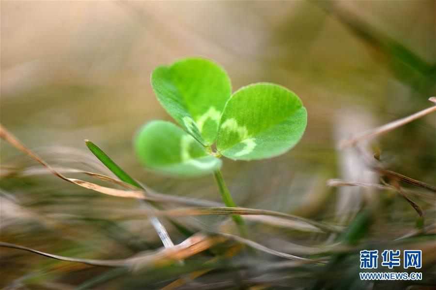 2月18日,在陜西西安植物園,一棵小草鉆出地面。早春時節(jié),隨著氣溫回升,各地春意漸濃。 新華社發(fā)(張樹忠 攝)